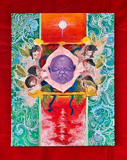 ![]() 絵画 『おばランド』星野 茜 オリジナルキャラクターの”おばけ”です。「さがしっこ絵本」をモチーフとしています。何かを探すという目的を作ることで、人間の探究心や子供心をくすぐり、作品を見た人が童心に返って純粋に楽しめる空間を目指して今作を制作しました。鑑賞者が自ら絵本に描かれているものを使って新たな問題を作り出すこともできます。ぜひ試してみてください! 例題:Q1気持ちよくお昼寝おばけQ2びっくり!目玉が飛び出ちゃったおばけ | ![]() 絵画 『浴室』灘 日波乃 日常生活で癒しを得られる入浴の時間を描いた。3人の有翼の人物は自分自身の内面であり、実年齢らしい 姿とそれより歳を重ねた姿と幼い子供の姿で、社会で自然と使い分けている振る舞いを表した。疲れや汚れを流す浴室を神聖な場に見立て、汚れを受けとる外とは隔たれた空間をつくり、私自身が入浴する際の特別に感じる時間を表現した。 |